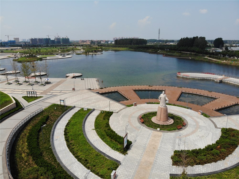 許昌市清泥河流域綜合治理工程位于許昌市,是許昌水生態(tài)文明建設(shè)9項(xiàng)大型示范工程之一,也是中心城區(qū)水系連通示范工程建設(shè)主要內(nèi)容,包括清泥河、運(yùn)糧河、靈溝河、幸福渠及東支和連通渠,治理總長(zhǎng)度38km,工程集防洪除澇、生態(tài)修復(fù)、濱水環(huán)境提升為一體,通過(guò)雕塑、景石、亭廊和橋梁等體現(xiàn)以三曹七子為代表的漢魏詩(shī)歌文化,營(yíng)造親水空間,開(kāi)啟“寄情詩(shī)歌、談笑古今”的許昌三國(guó)水文化之旅。2017年4月,許昌市成為河南省第一個(gè)、全國(guó)第二個(gè)通過(guò)驗(yàn)收的“全國(guó)水生態(tài)文明城市”。