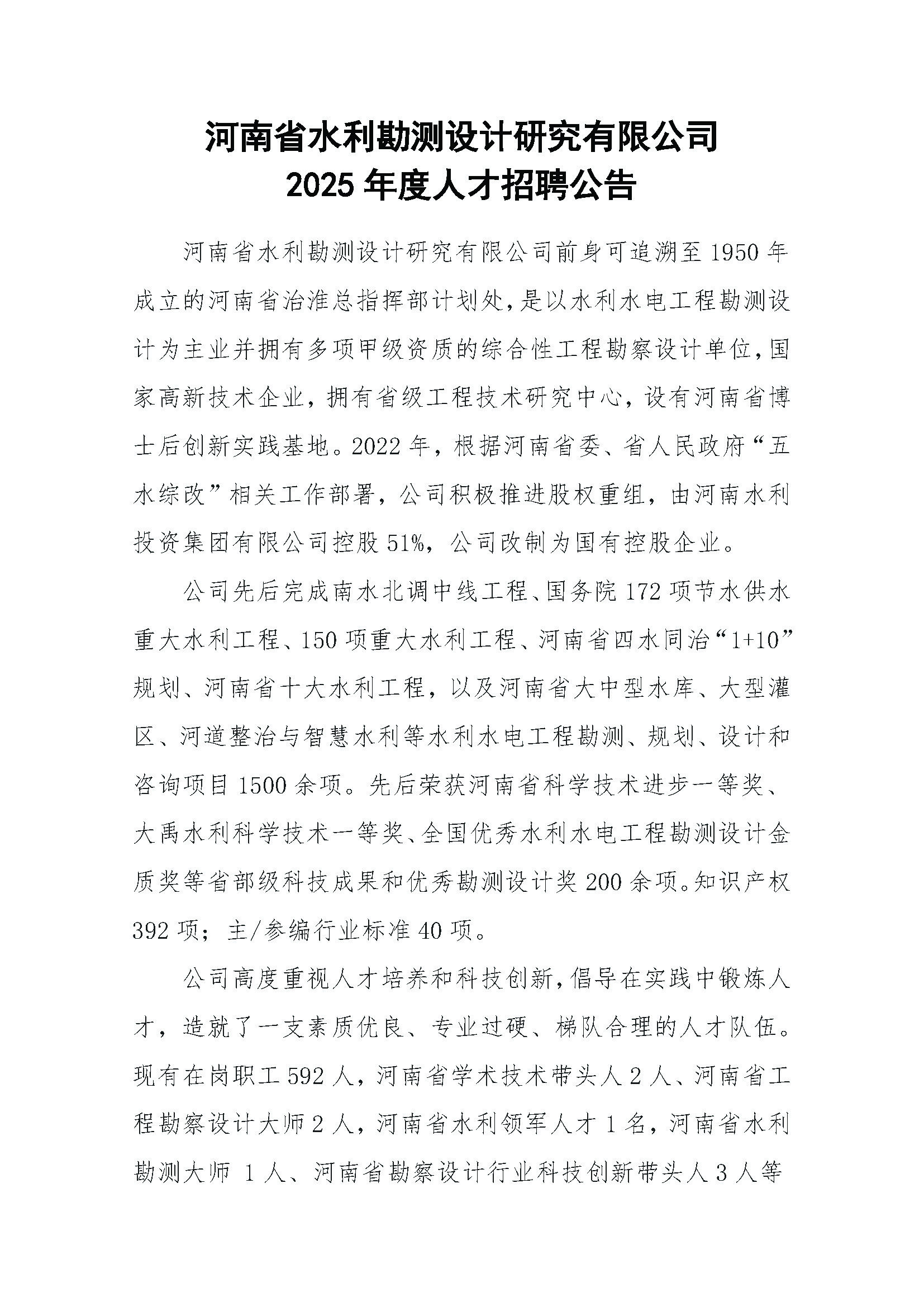 公司于2005年8月在原河南省水利勘測設(shè)計院基礎(chǔ)上整體改制而成,現(xiàn)已發(fā)展成為以工程勘測、規(guī)劃、設(shè)計、咨詢?yōu)橹?,集智慧水利、水生態(tài)景觀、工程總承包、全過程咨詢、國際工程和項(xiàng)目投資等業(yè)務(wù)于一體、旨在服務(wù)工程全生命周期的綜合性工程公司。