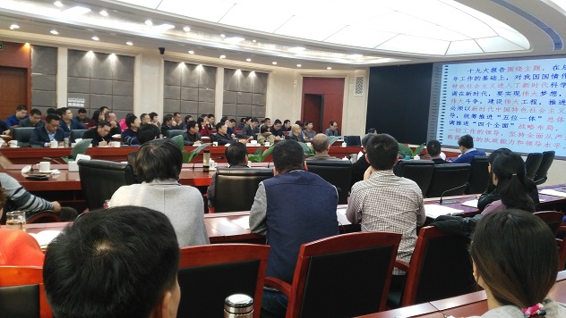 黨的十九大是全面建成小康社會決勝階段、中國特色社會主義發(fā)展關(guān)鍵時期召開的一次十分重要的大會,在我黨發(fā)展史和社會主義發(fā)展階段具有里程碑意義。為了使廣大黨員深入領(lǐng)會習(xí)總書記新時代中國特色社會主義思想,進一步推進公司學(xué)習(xí)貫徹黨的十九大精神工作,11月8日下午,我公司舉行“學(xué)習(xí)貫徹十九大精神專題報告會”,邀請中共鄭州市委黨校張文化教授作輔導(dǎo)報告。公司董事長、黨委書記翟淵軍主持會議,公司中層以上管理人員、黨員共計130余人參加會議。