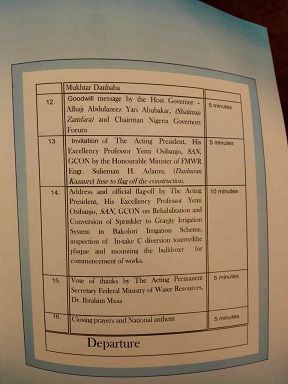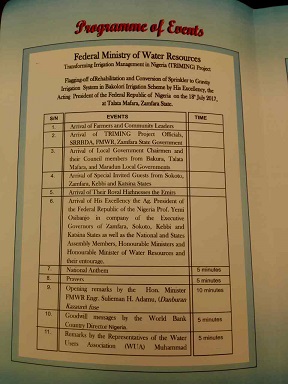 2017年7月18日,由尼日利亞聯(lián)邦政府向世界銀行貸款的Bakolori灌區(qū)項(xiàng)目開(kāi)工典禮在工程現(xiàn)場(chǎng)隆重舉行。該項(xiàng)目受到了尼日利亞政府的高度重視,多位政要和當(dāng)?shù)赝镣跚蹰L(zhǎng)受邀參加典禮儀式。按照典禮議程,尼日利亞目前最高掌權(quán)人代總統(tǒng)Prof. Yemi Osibanjo出席開(kāi)工典禮,講話并親自為工程開(kāi)工剪彩,由于突發(fā)的暴雨天氣,代總統(tǒng)未能按照既定的時(shí)間到達(dá)現(xiàn)場(chǎng)。最后,由尼日利亞聯(lián)邦水資源部部長(zhǎng)Engr. Suleiman Hussein Adamu主持典禮,并對(duì)該項(xiàng)目進(jìn)行了開(kāi)工儀式剪彩,世行官員、當(dāng)?shù)卣?、?dāng)?shù)厍蹰L(zhǎng)、農(nóng)民代表、咨詢方、承包商等參加了項(xiàng)目開(kāi)工典禮。