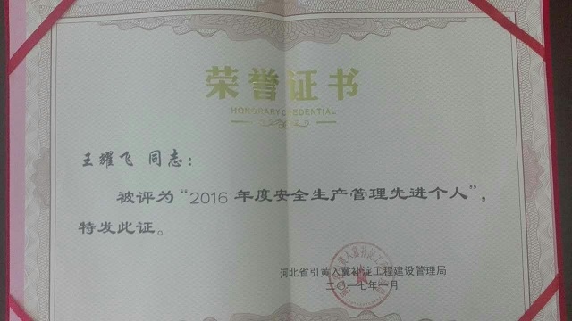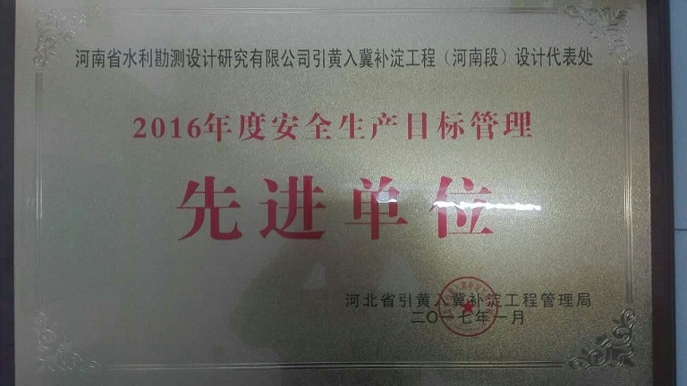 2017年3月1日上午,河北省引黃入冀補淀工程管理局對2016年度安全生產(chǎn)目標(biāo)管理的先進單位和個人予以表彰,河南省水利勘測設(shè)計研究有限公司引黃入冀補淀工程(河南段)設(shè)計代表處被評為先進單位,設(shè)代處成員王耀飛被評為先進個人,設(shè)計二院副院長馮濤,設(shè)代處處長王偉,設(shè)代處成員張征浩、梁榮慧參會。