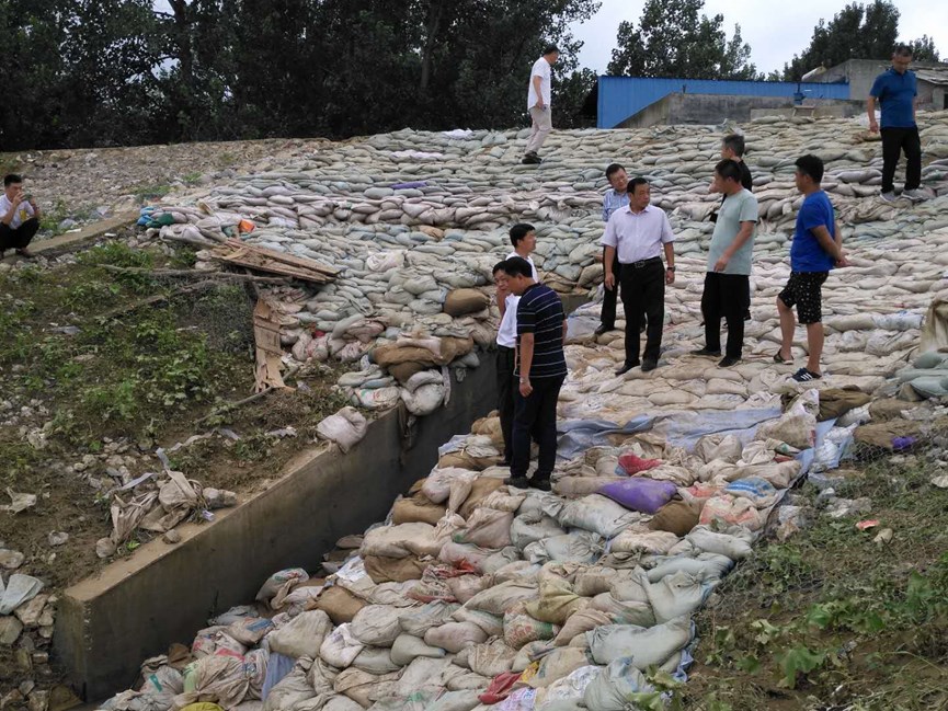 公司技術(shù)專家指導(dǎo)唐河縣珍珠河桐二村附近堤防險(xiǎn)情處理