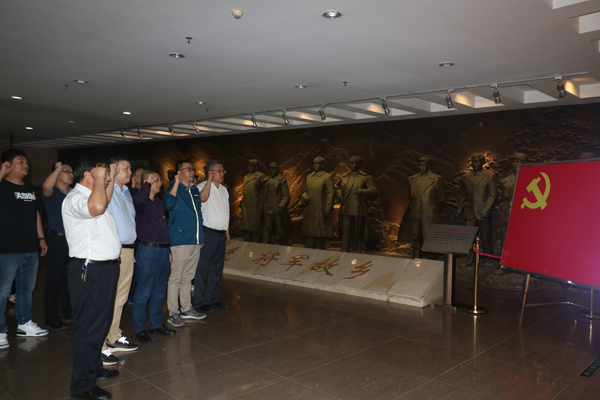 在鄂豫皖革命紀(jì)念館,大家懷著無比崇敬的心情瞻仰和聆聽了鄂豫皖地區(qū)革命先烈前仆后繼、英勇戰(zhàn)斗的光輝事跡。在鮮紅的黨旗下,大家重溫了神圣而莊嚴(yán)的入黨誓詞;在確山縣竹溝革命紀(jì)念館,大家被革命先賢們“為有犧牲多壯志,敢教日月?lián)Q新天”的英雄氣概深深震撼;在莊嚴(yán)肅穆的竹溝革命烈士陵園,大家緩緩拾級而上,深切緬懷革命先烈,并以三鞠躬形式表達(dá)對革命先烈的崇高敬意。