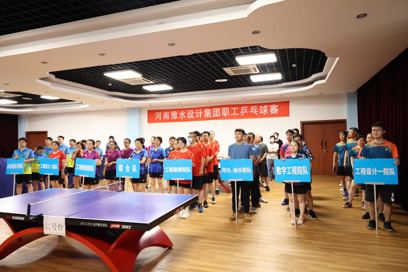 2022年7月22日(周五)晚18:30,豫水設(shè)計集團(tuán)2022年夏季乒乓球團(tuán)體賽在公司辦公樓一樓活動中心開幕,公司總經(jīng)理朱太山出席開幕式并致辭。報名參加比賽的共有8支隊伍計80多名運動員。