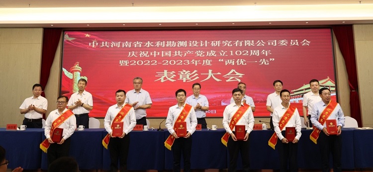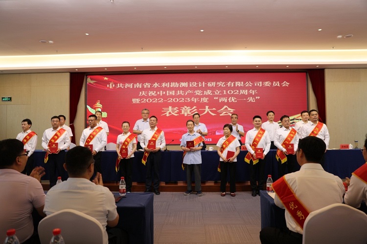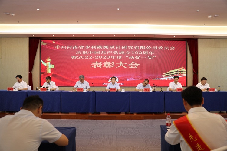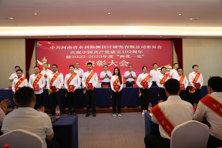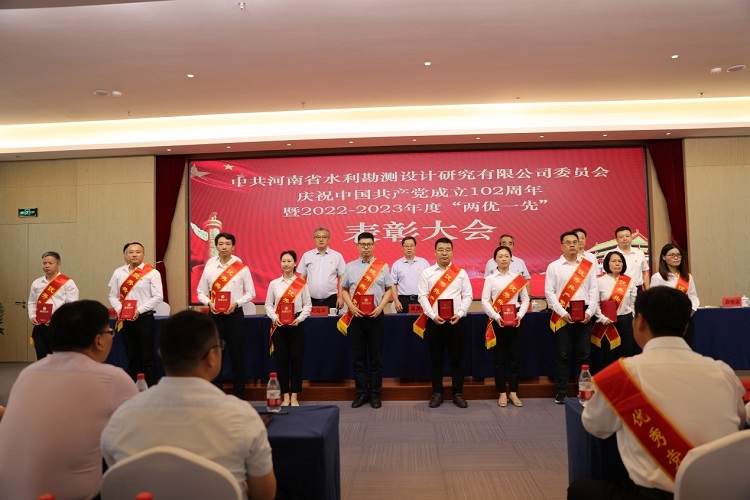 6月30日上午,中共河南省水利勘測設(shè)計研究有限公司委員會隆重舉行慶祝中國共產(chǎn)黨成立102周年暨2022-2023年度“兩優(yōu)一先”表彰大會,熱烈慶祝偉大的中國共產(chǎn)黨102歲華誕,系統(tǒng)總結(jié)公司兩年來黨建工作,表彰2022-2023年度優(yōu)秀共產(chǎn)黨員、優(yōu)秀黨務(wù)工作者和先進(jìn)黨支部,動員全體共產(chǎn)黨員向先進(jìn)學(xué)習(xí)、向模范看齊,進(jìn)一步激發(fā)廣大黨員群眾干事創(chuàng)業(yè)動力和熱情,共同為豫水設(shè)計的美好明天團(tuán)結(jié)奮斗。會議由公司黨委委員、總經(jīng)理朱太山主持。