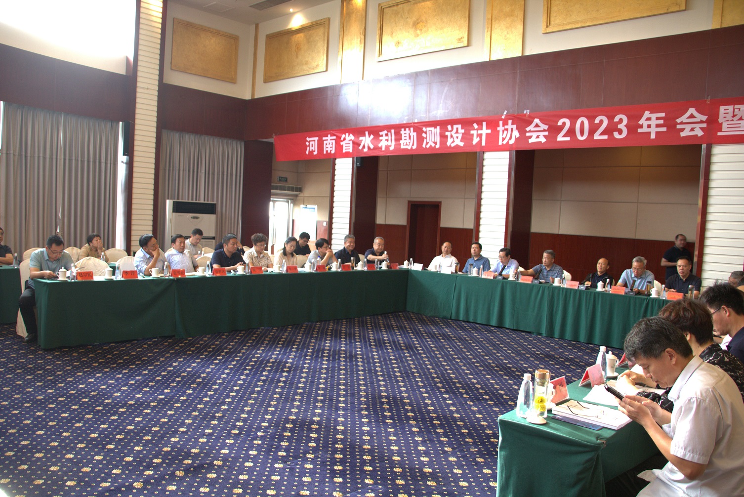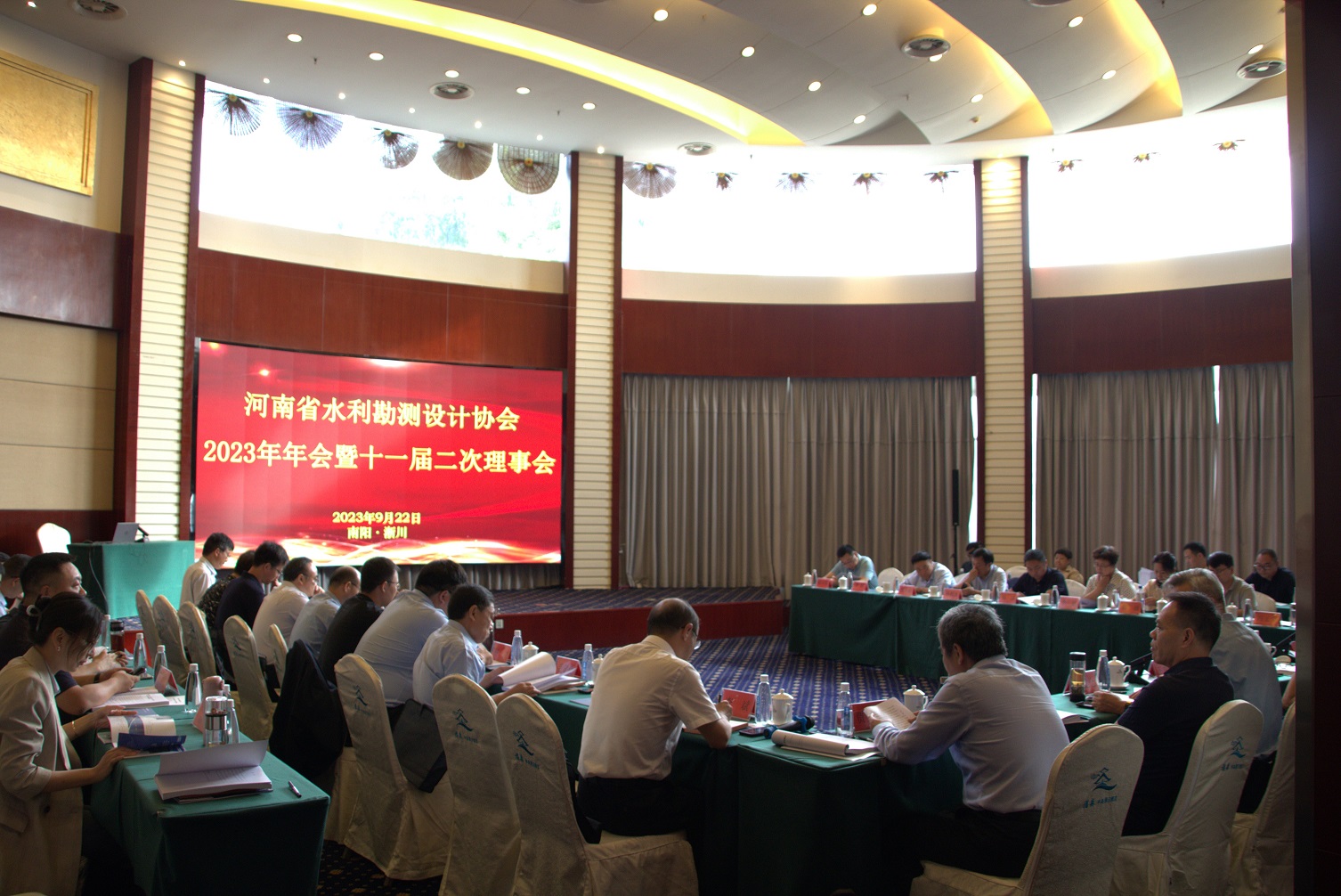 2023年9月22日,河南省水利勘測(cè)設(shè)計(jì)協(xié)會(huì)2023年年會(huì)暨十一屆二次理事(擴(kuò)大)會(huì)議在南陽(yáng)市淅川縣召開(kāi),18個(gè)理事單位到會(huì),會(huì)員代表50余人參加會(huì)議,會(huì)議由趙健倉(cāng)副理事長(zhǎng)主持。南陽(yáng)市水利建筑勘測(cè)設(shè)計(jì)院賈大周院長(zhǎng)發(fā)表了熱情洋溢的歡迎辭,河南省水利學(xué)會(huì)理事長(zhǎng)王憲章、南陽(yáng)市水利局總工程師曹道立到會(huì)并致辭。