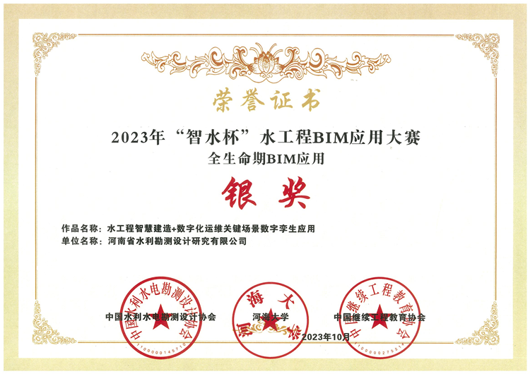 近日,2023年“智水杯”水工程BIM應(yīng)用大賽獲獎項目公示。豫水設(shè)計公司申報項目《賈魯河流域數(shù)字孿生施工度汛“四預(yù)”應(yīng)用》獲建管與施工BIM應(yīng)用金獎;《水工程智慧建造+數(shù)字化運維關(guān)鍵場景數(shù)字孿生應(yīng)用》獲全生命期BIM應(yīng)用銀獎。