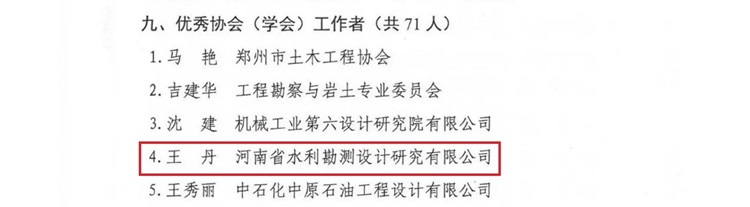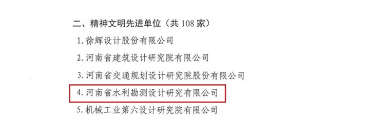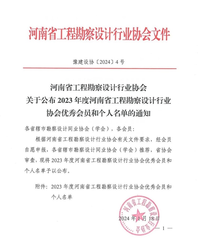 近日,河南省工程勘察設(shè)計(jì)行業(yè)協(xié)會公布“2023年度河南省工程勘察設(shè)計(jì)行業(yè)優(yōu)秀會員和個(gè)人名單”通知,公司獲得多項(xiàng)表彰。