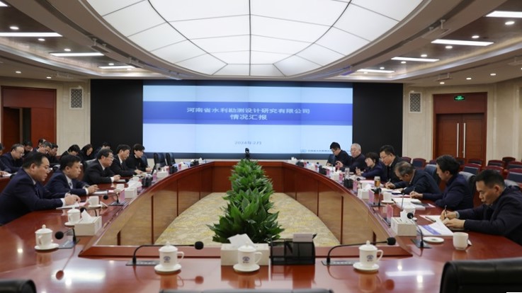 周貴恒一行參觀了豫水設(shè)計(jì)公司院史陳列廳,聽(tīng)取了豫水設(shè)計(jì)公司整體工作開(kāi)展情況匯報(bào),并與公司領(lǐng)導(dǎo)班子、各院部主要負(fù)責(zé)同志進(jìn)行座談。