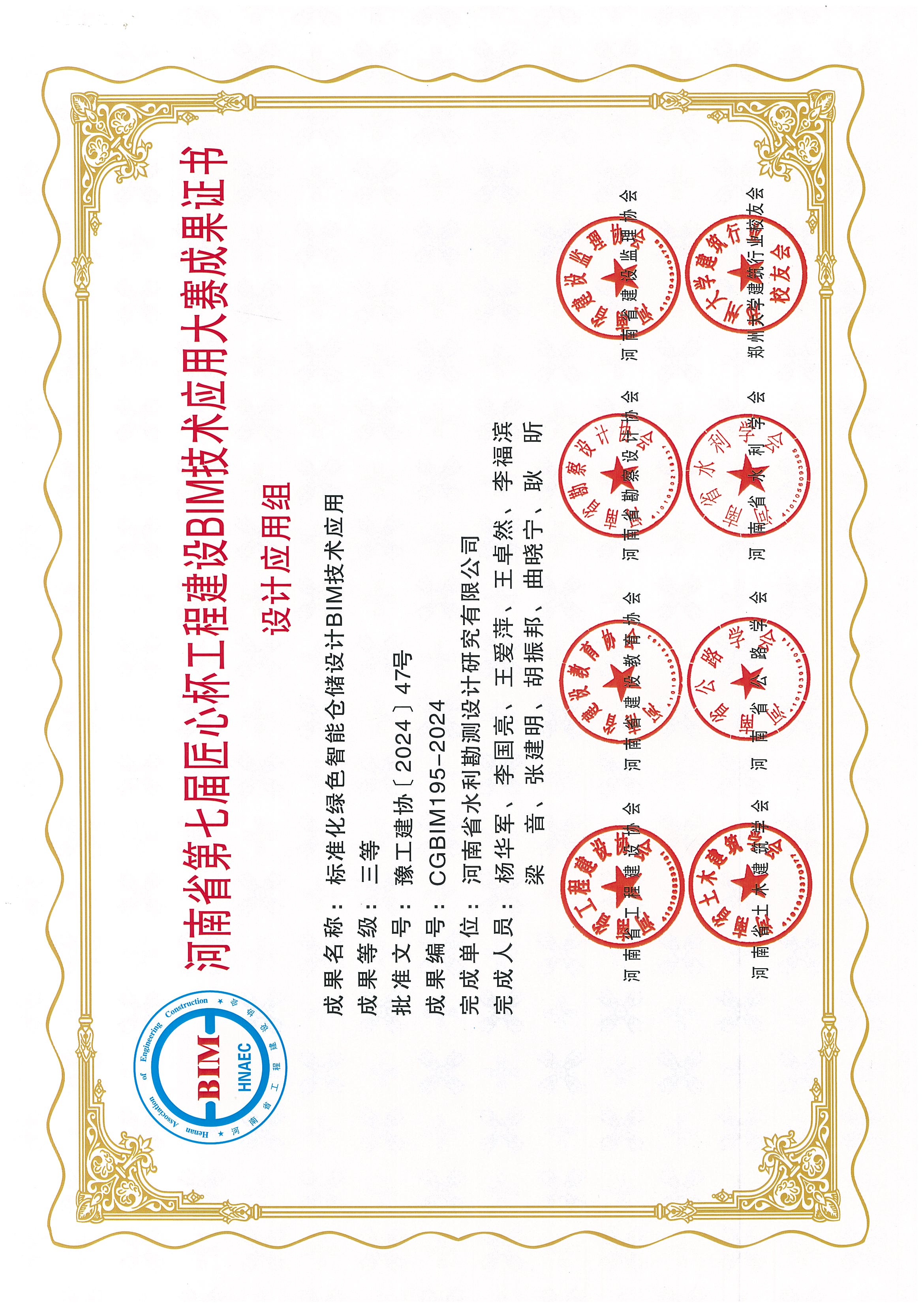 3.《河南省蟒河口水庫左岸防滲工程中的BIM應(yīng)用》《BIM+和GIS在南水北調(diào)中線工程水土保持設(shè)計中的應(yīng)用》《標(biāo)準(zhǔn)化綠色智能倉儲設(shè)計BIM技術(shù)應(yīng)用》獲得三等獎。