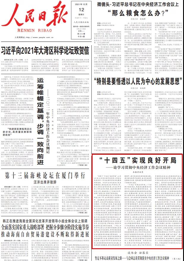 《人民日報》自12月12日起,連發(fā)5篇評論員文章,論學習貫徹中央經(jīng)濟工作會議精神。