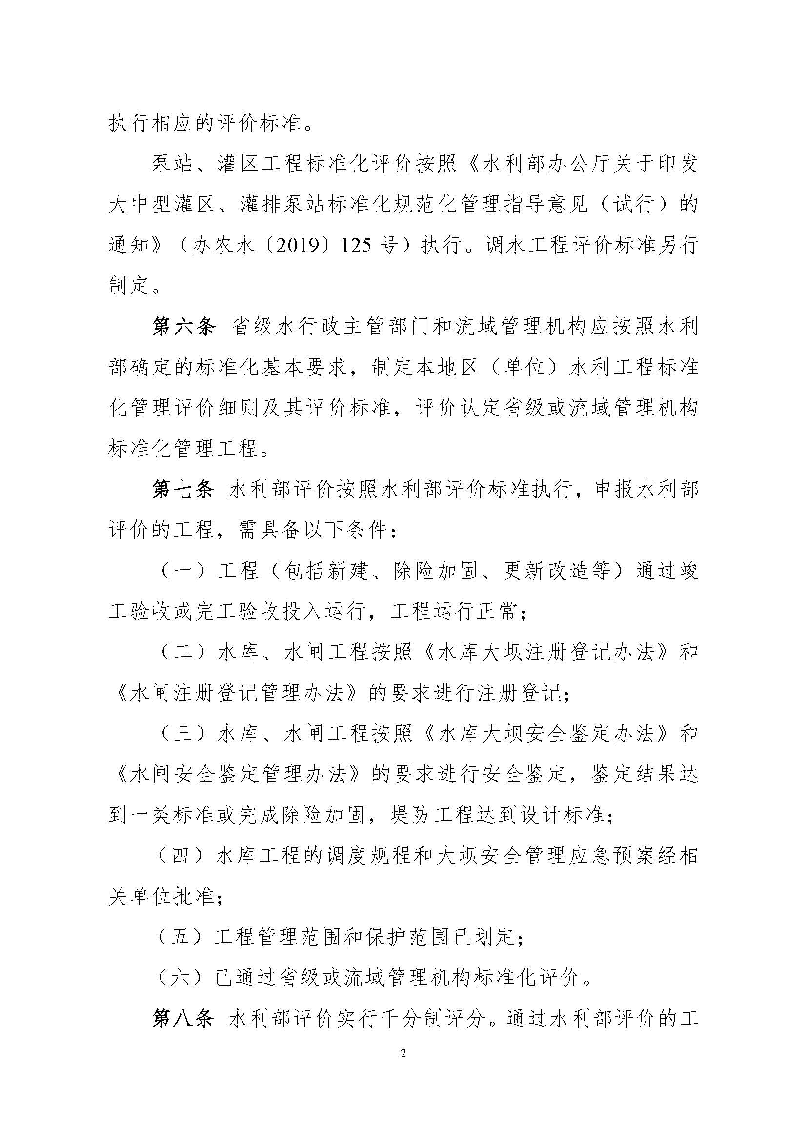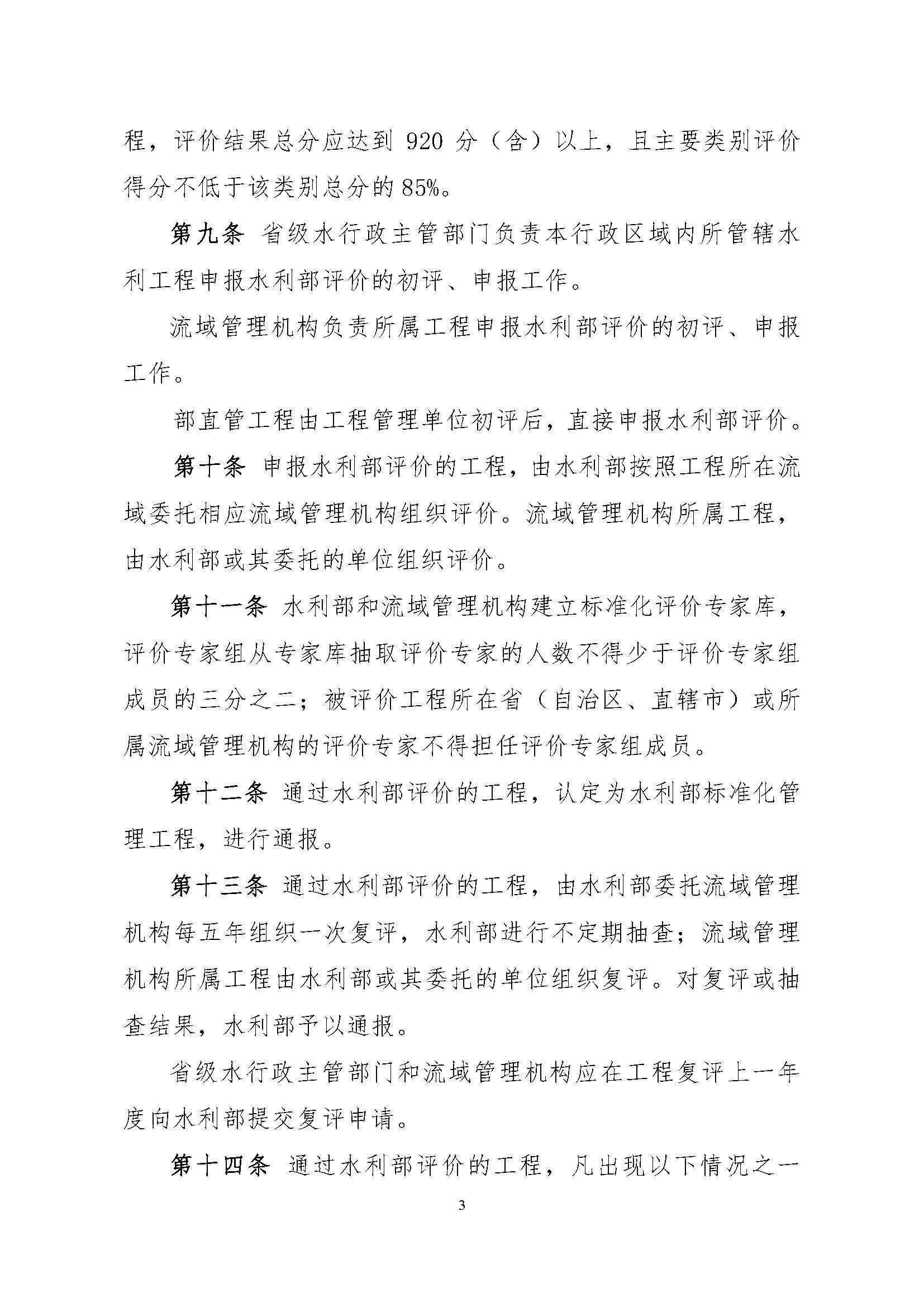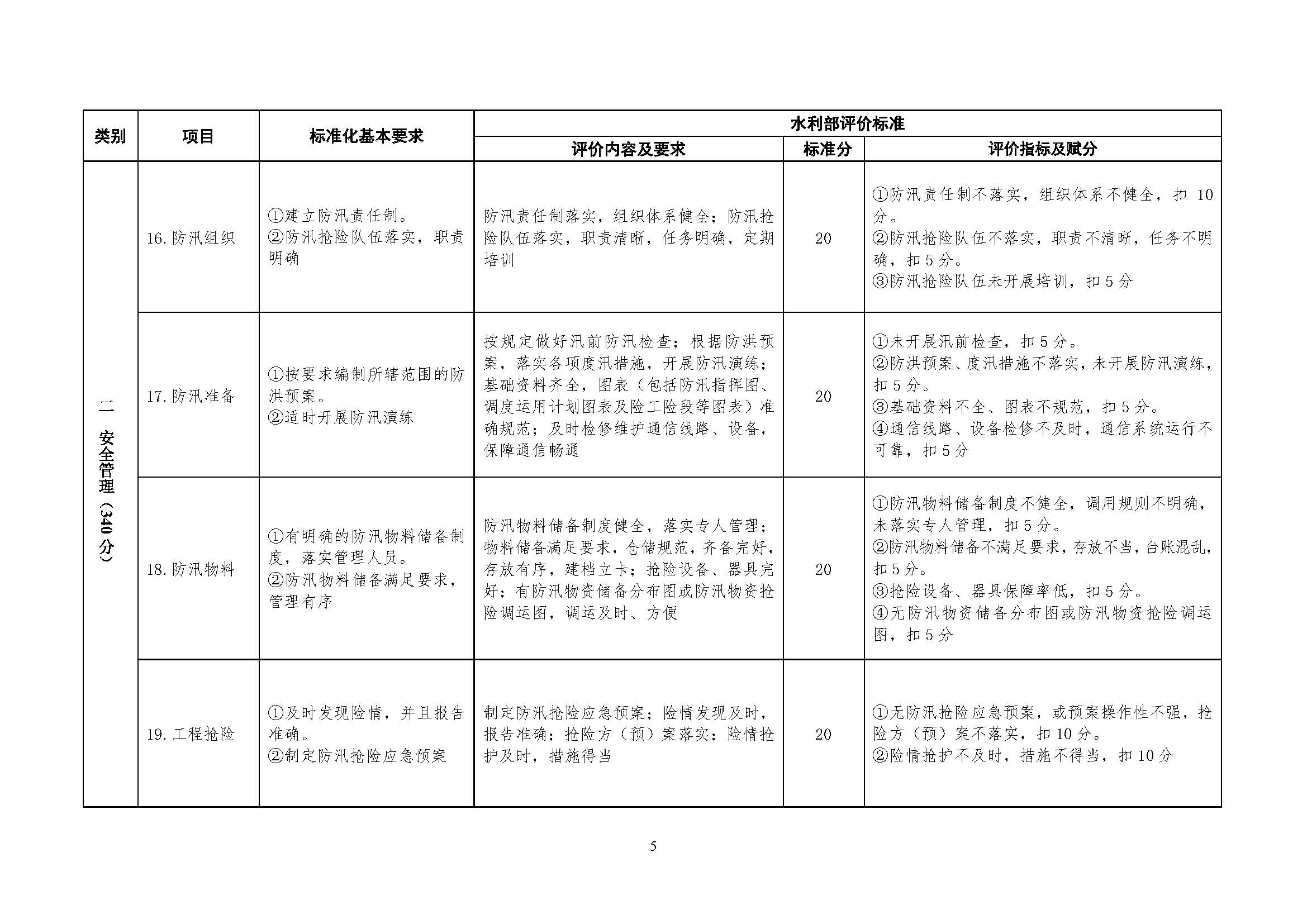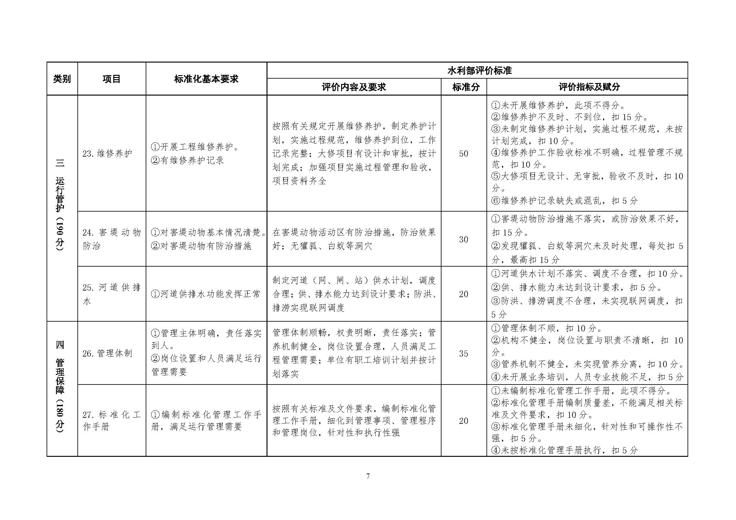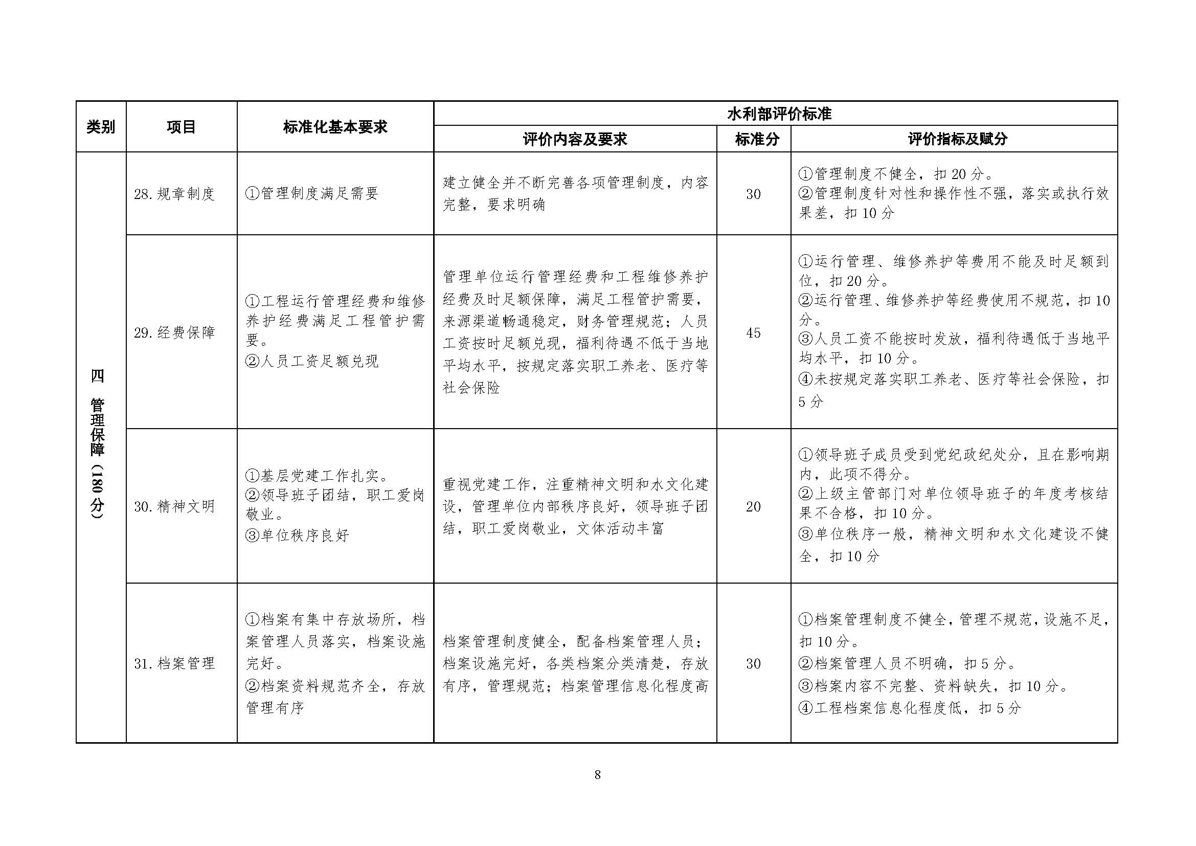 與《指導意見》相配套,同時印發(fā)了《評價辦法》及其評價標準,對標準化評價的適用范圍、評價主體、評價程序等作出規(guī)定,包括大中型水庫、大中型水閘、3級以上堤防評價標準。