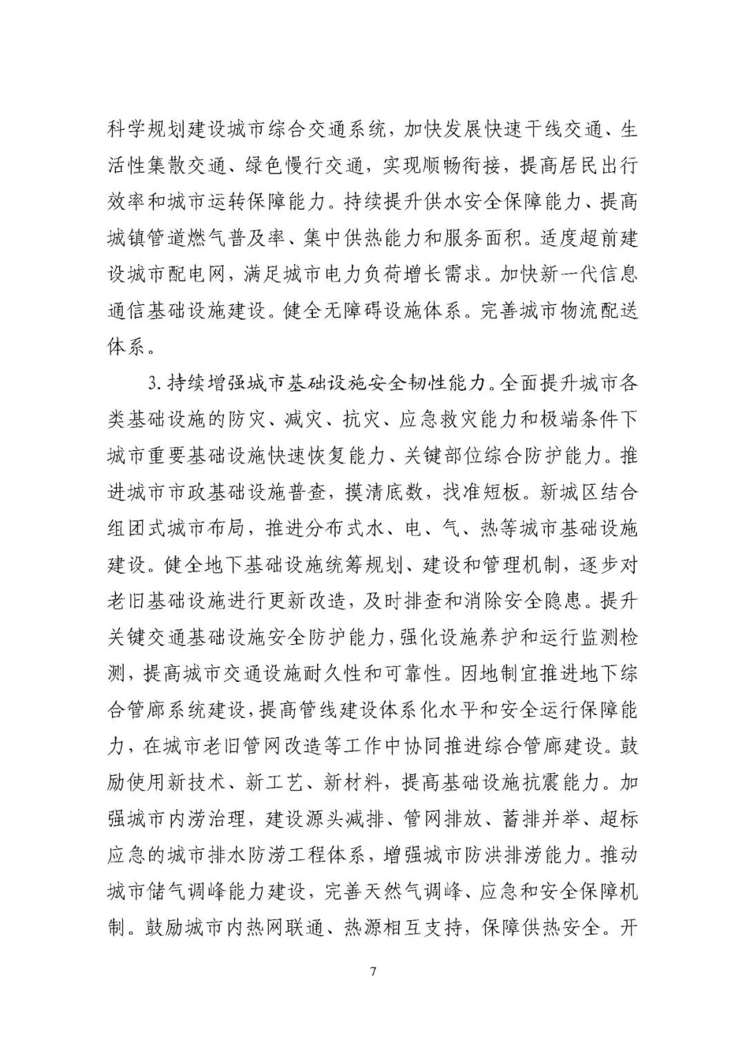 《規(guī)劃》圍繞構(gòu)建系統(tǒng)完備、高效實(shí)用、智能綠色、安全可靠的現(xiàn)代化基礎(chǔ)設(shè)施體系,提出4方面重點(diǎn)任務(wù)。一是推進(jìn)城市基礎(chǔ)設(shè)施體系化建設(shè),增強(qiáng)城市安全韌性能力;二是推動(dòng)城市基礎(chǔ)設(shè)施共建共享,促進(jìn)形成區(qū)域與城鄉(xiāng)協(xié)調(diào)發(fā)展新格局;三是完善城市生態(tài)基礎(chǔ)設(shè)施體系,推動(dòng)城市綠色低碳發(fā)展;四是加快新型城市基礎(chǔ)設(shè)施建設(shè),推進(jìn)城市智慧化轉(zhuǎn)型發(fā)展。