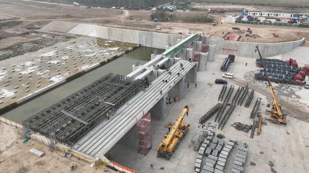 截至11月上旬,河道開挖、疏浚及堤防填筑施工已全部完成,6座攔河閘均已完成閘室底板澆筑,正在進行擋墻及上部結(jié)構(gòu)混凝土施工,其他建筑物施工有序推進,累計完成投資43.95億元,占總投資的59.42%,其中2022年度完成投資38.77億元,占2022年度計劃44.78億元的86.58%。